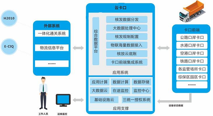 系統(tǒng)主要由前端嵌入式物聯(lián)設(shè)備、自適應(yīng)負(fù)載均衡總線、集中管控云平臺、綜合數(shù)據(jù)云底賬監(jiān)控平臺等組成,實現(xiàn)前端物聯(lián)設(shè)備分散式接入、集中管理,智能卡口云平臺集中部署,云底賬大數(shù)據(jù)智能分析,全面兼容各類卡口硬件和業(yè)務(wù)流程,實現(xiàn)物流底賬與車輛通行集中驗放管理。通過云平臺集中部署,實現(xiàn)前端物聯(lián)設(shè)備自適應(yīng)接入與智能化運行狀態(tài)分析,實現(xiàn)系統(tǒng)軟件插件式集中管理,以及不同卡口功能模塊的集中配置與推送。