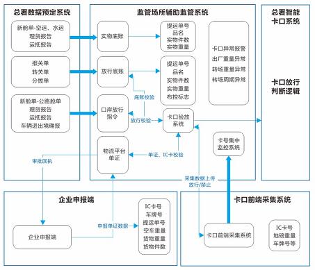 航通監(jiān)管場所輔助監(jiān)管系統(tǒng)是根據(jù)監(jiān)管場所備案信息、企業(yè)物流運(yùn)作信息、海關(guān)作業(yè)指令信息等,建立監(jiān)管場所物流底賬數(shù)據(jù),實(shí)現(xiàn)對進(jìn)出監(jiān)管場所里的貨物動態(tài)進(jìn)行有效監(jiān)管的智能系統(tǒng)。它通過采集監(jiān)管場所運(yùn)輸工具、集裝箱、貨物和物品的“進(jìn)、出、轉(zhuǎn)、存”及相關(guān)處理情況等企業(yè)物流運(yùn)作信息,實(shí)現(xiàn)與艙單管理系統(tǒng)、運(yùn)輸工具管理系統(tǒng)、智能卡口系統(tǒng)、查驗(yàn)管理系統(tǒng)、機(jī)動巡查系統(tǒng)等海關(guān)物流作業(yè)系統(tǒng)的數(shù)據(jù)交換,并向企業(yè)系統(tǒng)發(fā)布海關(guān)作業(yè)指令信息。系統(tǒng)支持對碼頭、車檢場、陸路口岸、貨棧、堆場等類型的海關(guān)監(jiān)管場所的通關(guān)業(yè)務(wù)進(jìn)行單證流和實(shí)物流的統(tǒng)一高效監(jiān)管。
