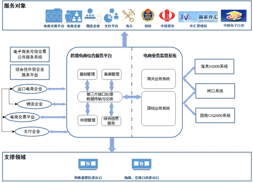 電商商戶、電商平臺(tái)、物流(快件)、支付、特殊監(jiān)管場(chǎng)所、倉(cāng)儲(chǔ)等企業(yè)以及個(gè)人消費(fèi)者。